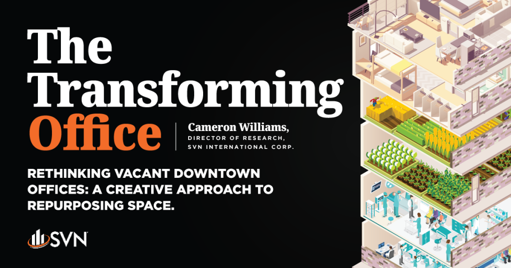By Cameron Williams, Director of Research, SVN International Corp. Downtown office vacancies continue to climb, with a significant portion of the workforce operating remotely. The trend away from traditional office usage is reflected in a projection that office conversion projects …